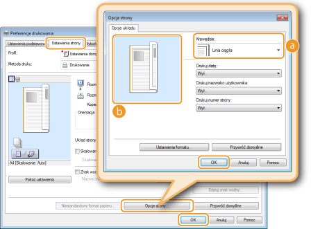 Wyświetlenie podglądu strony z wybranym obramowaniem.