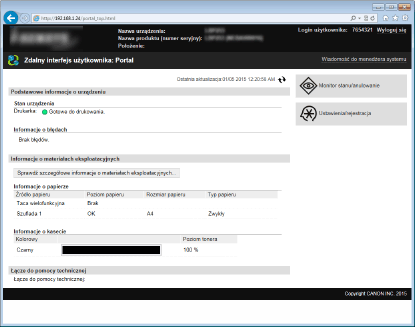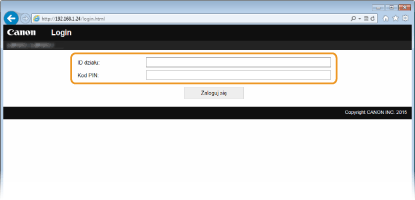 Pozwala wykonywać wszystkie operacje i konfigurować wszystkie ustawienia w Zdalnym interfejsie użytkownika. Wprowadź poprawny identyfikator w polu [ID Menedżera Systemu] oraz PIN w polu [Kod PIN menedżera systemu] (
