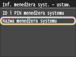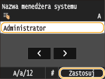 Wprowadź nazwę składającą się maksymalnie z 32 znaków w polu nazwy menedżera systemu i dotknij przycisku <Zastosuj>. Wprowadzanie tekstu