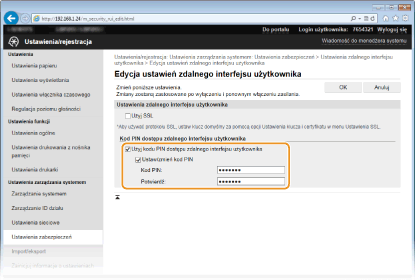 ![]() Korzystanie z panelu sterowaniaKod PIN dostępu do zdalnego interfejsu użytkownika można określić z poziomu <Menu> na ekranie Główny. Ustawienia zdalnego interfejsu użytkownika