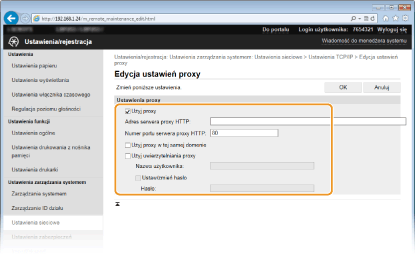 Zaznacz pole wyboru [Użyj proxy] i podaj wymagane ustawienia.