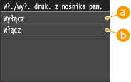 Dotknij <Włącz/wyłącz drukowanie z nośnika pamięci>.