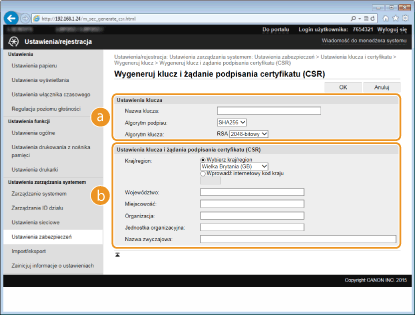 [Ustawienia klucza i żądania podpisania certyfikatu (CSR)]