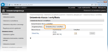 Kliknij przycisk [Usuń] umieszczony po prawej stronie pary kluczy lub certyfikatu CA, które chcesz usunąć