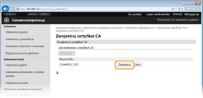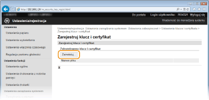 [Ustawienia klucza i certyfikatu] lub [Ustawienia certyfikatu CA].