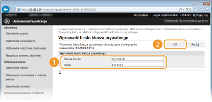Wprowadź kolejno nazwę pary kluczy i hasło, a następnie kliknij przycisk [OK].