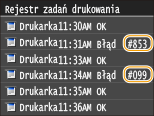Jeżeli drukowanie zakończy się niepowodzeniem z powodu błędu, ekran dziennika drukowania wyświetli kod błędu składający się z trzech cyfr. Należy sprawdzić następujące elementy, aby odnaleźć przyczynę i rozwiązania każdego kodu błędu.