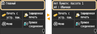 отображается экран, позволяющий просматривать состояние печатаемого документа, а также информацию о состоянии устройства (например, объем тонера, оставшегося в картридже) или такие сведения о параметрах сети, как IP-адрес устройства.