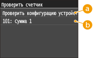 ) отображается экран <Проверить счетчик>. На этом экране можно просмотреть значения счетчика распечаток, а также серийный номер аппарата и конфигурацию аппарата.