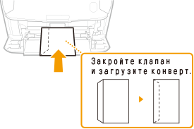 Загружайте конверты таким образом, чтобы отворот был направлен в левую сторону, как показано на иллюстрации.