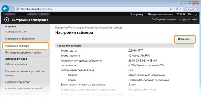 Можно задать автоматическое выключение питания в определенное время каждого дня недели. Это позволяет избежать ненужного расхода электроэнергии, если аппарат забыли выключить. По умолчанию эта функция отключена.