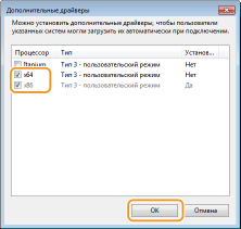 Возможность установки драйверов посредством сети может быть недоступна. Это зависит от типа операционной системы и битной архитектуры (32-битная или 64-битная) сервера печати и клиентских компьютеров.