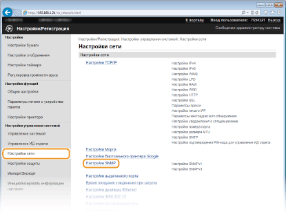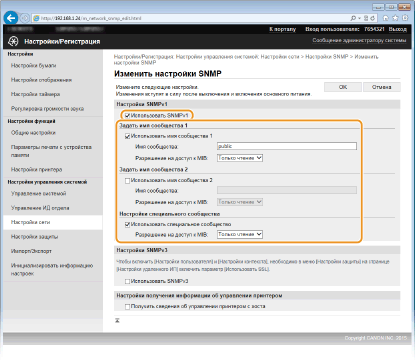Если обе версии SNMP отключены, некоторые функции аппарата будут недоступны (например, получение сведений об аппарате посредством драйвера принтера).
