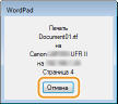 Отмена из приложенияВ некоторых приложениях появляется следующий экран. Печать можно отменить, нажав [Отмена].