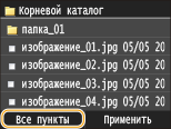 Если выбрать файл до выбора <Все пункты>, можно выбрать только файлы того же формата.