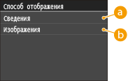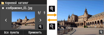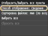 Изменить способ отображения можно в пункте <Сведения> (для имен файлов и дат изменения) и пункте <Изображения> (предварительный просмотр). Благодаря предварительному просмотру можно проверить содержимое файлов перед выбором файла для печати.