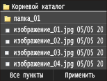 Чтобы отобразить содержимое папки, выберите папку и коснитесь. Чтобы вернуться в корневую папку, нажмите