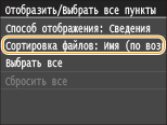 Можно изменить порядок сортировки файлов на запоминающем устройстве USB.