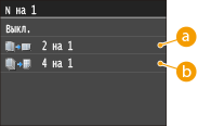 Можно напечатать два или четыре изображения на одном листе. Выберите <2 на 1> или <4 на 1>. Режим <N на 1> недоступен для печати файлов TIFF.