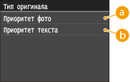 Можно выбрать тип оригинала в зависимости от изображения, которое необходимо напечатать. Выберите <Приоритет фото> или <Приоритет текста>.