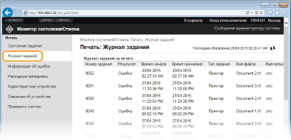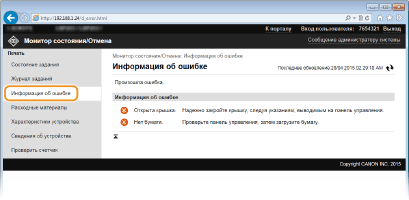 При появлении ошибки щелкните сообщение, показанное в [Информация об ошибке] на странице портала (главная страница), — отобразится эта страница.