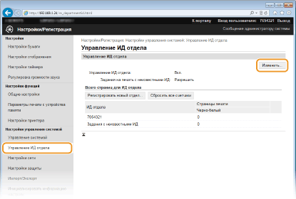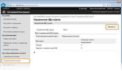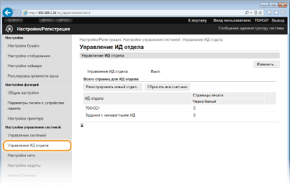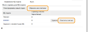 При необходимости обнулить счетчик страниц щелкните ссылку имени подразделения и затем щелкните [ИД отдела] и [Очистить счетчик]