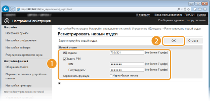 Если для имени подразделения задан PIN-код, введите число длиной до семи цифр.