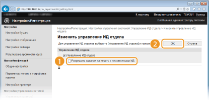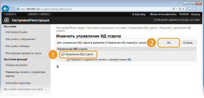 Выберите флажок [Использовать управление именем подразделения] и нажмите [Настройки] справа от него.