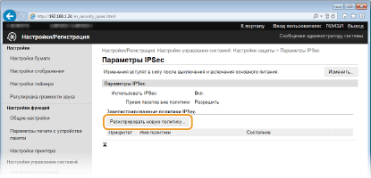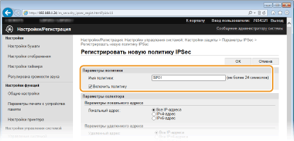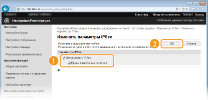 Включите использование IPSec для всех IP-пакетов, которые отправляются с аппарата на IPv6-адрес или поступают в него с этого адреса.