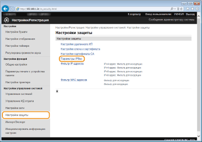 Аппарат не может одновременно использовать протоколы IPSec и DHCPv6.