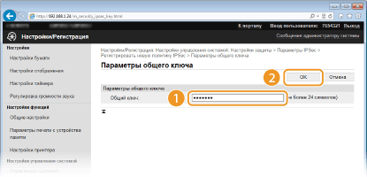 Введите предварительный ключ длиной до 24 буквенно-числовых символов и щелкните [OK].