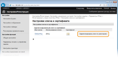 Щелкните [Зарегистрировать ключ по умолчанию] справа от пары ключей, которую вы хотите использовать.