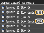 Если печать не выполняется в результате ошибки, на экране журнала печати отображается код ошибки, состоящий из трех цифр. Чтобы найти причины и решения, связанные с каждым кодом ошибки, ознакомьтесь со следующими разделами.