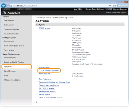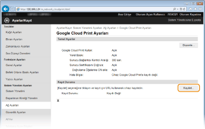 Makinenin Google Cloud Print işlevini etkinleştirin. Makinenin Google Cloud Print işlevini devre dışı da bırakabilirsiniz.