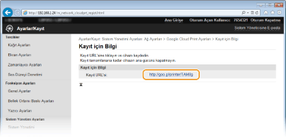 [Kayıt URL'si] için görüntülenen URL bağlantısını tıklatın.
