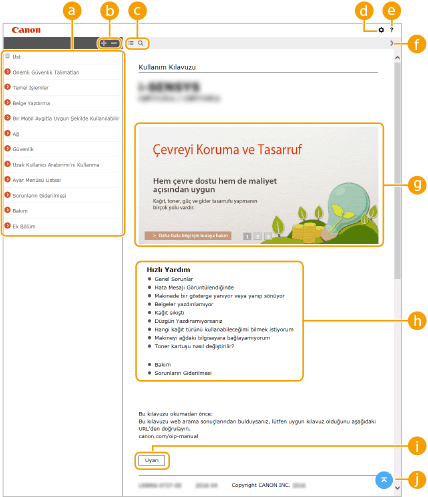 Elektronik Kılavuz başlatıldığında görünür.
