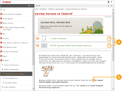 Ekranda, içindekiler ve arama arasında geçiş yapmak için tıklatın.
