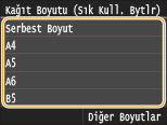 Yüklü kağıt boyutu gösterilmiyorsa, <Diğer Boyutlar> öğesine dokunun.