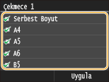 Kağıt boyutu ayarının seçimi için, ekranda yalnızca sık kullanılan kağıt boyutlarının gösterilmesini sağlayabilirsiniz.