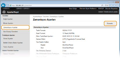 Haftanın her bir günü belirtilen bir zamanda gücü otomatik olarak KAPATMAyı sağlayacak olan bir ayar yapabilirsiniz. Bu, size, gücü KAPATMA işleminin ihmal edilmesinden dolayı meydana gelebilecek gereksiz enerji tüketimini önleme olanağı tanır. Varsayılan ayar olarak, bu işlev devre dışı bırakılmıştır.