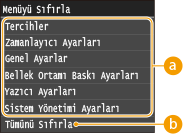 Satın alma sırasında varsayılan olarak ayarlanmış <Ağ Ayarları> öğesini geri yüklemek için aşağıdaki işlemi uygulayabilirsiniz.