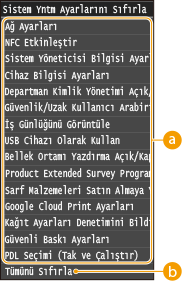 <Sistem Yönetimi Ayarları> öğesi seçildiğinde