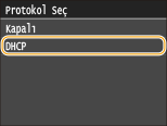 <Kapalı> öğesine dokunun. Bu hizmetler kullanılabilir olmadığında <DHCP> öğesine dokunursanız makine bu hizmetlere ilişkin ağ arayarak zaman ve iletişim kaynaklarını harcar.