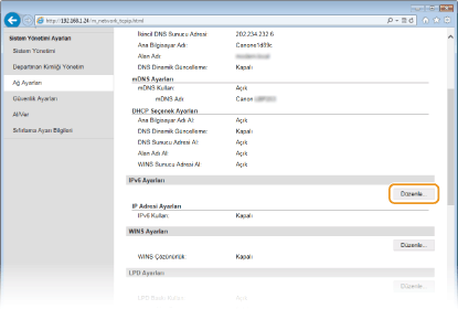Ayarların doğru olup olmadığını denetlemeMakinenin IPv6 adresi kullanılarak, bilgisayarınızla Uzak Kullanıcı Arabirimi ekranının görüntülenebildiğinden emin olun. Uzak Kullanıcı Arabirimi'ni Başlatma