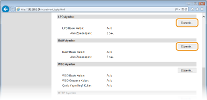 [LPD Ayarları] veya [RAW Ayarları] içinde [Düzenle] öğesini tıklatın.