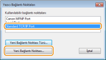 [Kullanılabilir bağlantı noktaları] içinde [Standart TCP/IP Bağlantı Noktası] öğesini seçin ve [Yeni Bağlantı Noktası] düğmesini tıklatın.