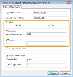 Eğer [Raw] seçildiyse, [Bağlantı Noktası Numarası] değerini değiştirin.
