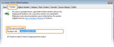 Bir yazdırma sunucusu kullanırken Departman Kimliği Yönetimini yürütmek içinYazıcı sürücüsü kurulumu sırasında, Canon Driver Information Assist Service (Canon Sürücü Bilgileri Yardımcı Hizmeti ) eklenmelidir. Daha fazla bilgi edinmek için bkz. Yazıcı Sürücüsü Yükleme Kılavuzu.