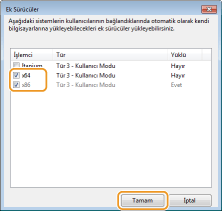 ![]() Yazdırma sunucusunun işletim sistemine bağlı olarak aşağıda belirtilenlerden ilave sürücüleri seçin.