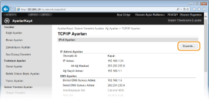 [IPv4 Ayarları] içinde [Düzenle] öğesini tıklatın.